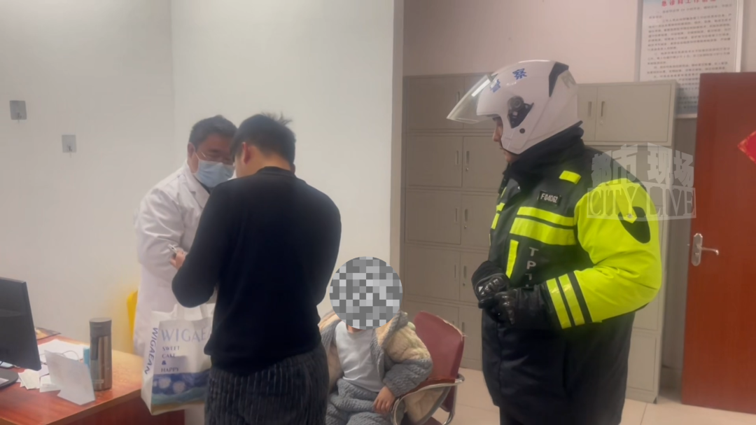 当晚10点多,景德镇市公安局交管支队铁骑队员张博文、喻昆巡逻至迎宾大道时,一辆赣E牌照的私家车突然停下,驾驶员吴先生焦急地向他们求助,称车上孩子高烧已达41度,并出现神志不清的状况。