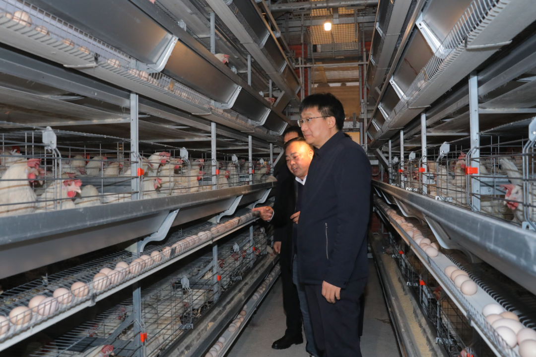 南昌市瑞鑫牧业有限公司现有存栏蛋鸡70万羽,是农业农村部农产品质量安全智慧监管试点企业。高世文走进规模化鸡舍和蛋品分拣车间,详细了解企业养殖和生产经营情况。叮嘱企业要把好生产全流程安全关,紧盯饲料、禽流感、抗生素及重金属等重点领域,确保禽蛋质量,加强产销对接,全力做好稳产保供工作。