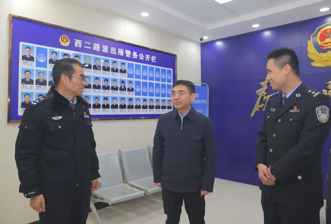 蒋文定先后来到市公安局经开区分局西二路派出所、市公安局交管支队浔阳大队人民路中队,并前往柴桑路与沿河北路交叉口,看望慰问一线执勤民辅警,听取节日期间社会治安、交通安全管理等情况汇报,对基层公安机关在维护稳定、服务群众方面取得的成效予以肯定。他强调,节假日期间人员流动大、安全责任重,要强化风险预判和应急处置,严厉打击各类违法犯罪,强化道路交通疏导与违法查处,确保社会大局安全稳定。
