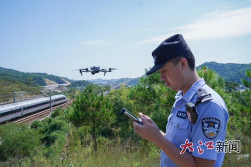 大江新闻讯 (通讯员王梦怡)清晨的阳光中,上饶站派出所线路民警轻推无人机操控杆,螺旋桨划破山间宁静,镜头实时传回铁路沿线画面,民警专注地观察护网周边情况,同时留意远处有一处道路施工工地的防护动态。入秋以来,赣东北地区干燥少雨,火灾隐患陡增,加之秋收后道路翻修、铁路沿线建设等工程集中,上饶站派出所开启“空中+地面”立体巡查模式,既严防火情,更以无人机为抓手主动督促施工安全规范,为辖区铁道线筑牢安全屏障。