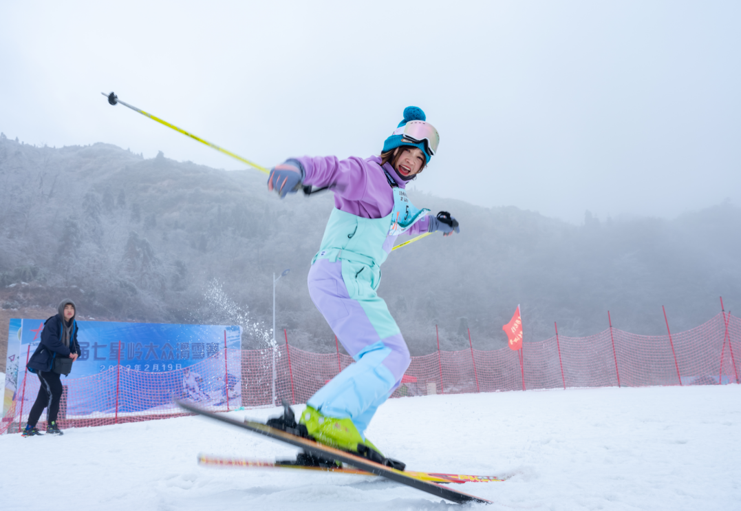 抵达海拔1350米的核心雪场,3万平方米的雪地如一块巨大的白绒毯,铺展在“U”形谷地间,初、中级滑道错落有致。身着五彩滑雪服的游客们,是雪地里最灵动的色彩:初学者们在教练的“一对一”指导下,小心翼翼地尝试站姿,脚下的雪板轻擦雪地,发出细碎的“沙沙”声,偶尔摔倒也笑声朗朗,脸颊通红却眼神发亮,在一次次尝试中解锁滑雪的乐趣;进阶玩家则如离弦之箭、似雪上飞燕,身姿矫健地从滑道飞驰而下,雪板划过之处,扬起阵阵雪雾,留下一道道优美的弧线,速度与激情在冬日的寒风中尽情释放。尖叫声、欢笑声、教练的指导声交织在一起,与雪板摩擦雪地的声响汇成冬日最动听的乐章,温暖了整个山谷。