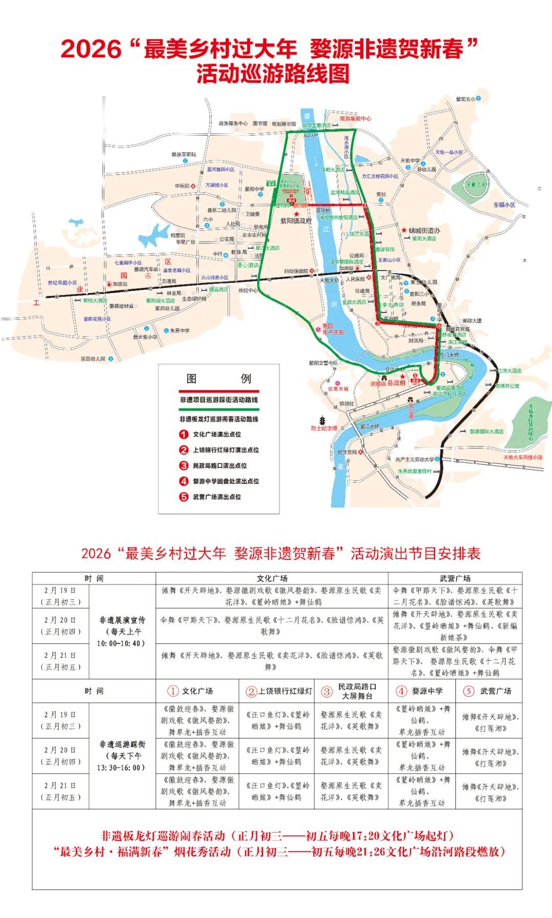 活动内容:组织非遗项目板龙灯(100板160人)沿路线开展巡游闹春活动。