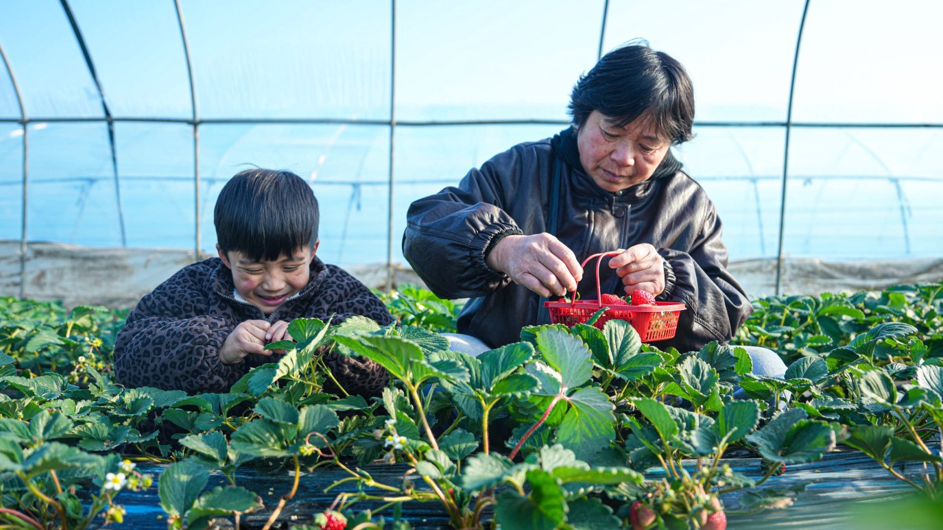 1月13日,南丰县市山镇翠云村的草莓采摘园里暖意融融,一颗颗红艳欲滴的草莓悄然成熟,散发出馥郁芬芳,吸引了众多游客前来体验采摘乐趣,享受冬日里的鲜活香甜。李煜祖摄