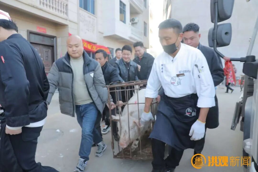 “我从海南驾车回九江永修,听说这里有杀猪宴,特意绕路过来看看。”游客黄勇志表示,现场的热闹氛围超出预期,“浓浓的乡村年味扑面而来,特别有感觉。”来自广东东莞的顾女士则是驾驶房车旅行途中得知活动消息,“在抖音上刷到这里有杀猪宴,刚好就在附近,就过来体验下。”