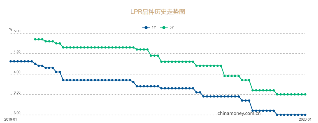1月20日,中国人民银行授权全国银行间同业拆借中心公布,2026年1月20日贷款市场报价利率(LPR)为:1年期LPR为3.0%,5年期以上LPR为3.5%,均较上期维持不变。这也是LPR连续8个月维持不变。