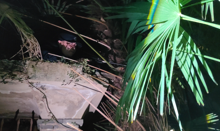 民警攀上围墙