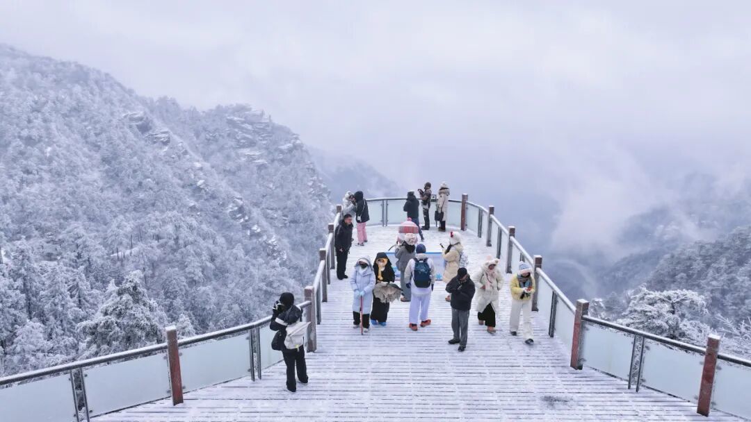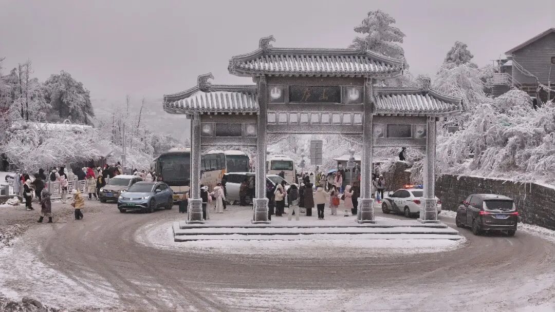 雪落庐山,红瓦映白,峰峦裹银。孩童的嬉闹、游人的欢笑,与雪花飘落的轻响交织,在牯岭街巷山间缓缓流淌。这场南国雪,绘就了匡庐冬日盛景,更让远道而来的人们,邂逅了最动人的冬日温柔。