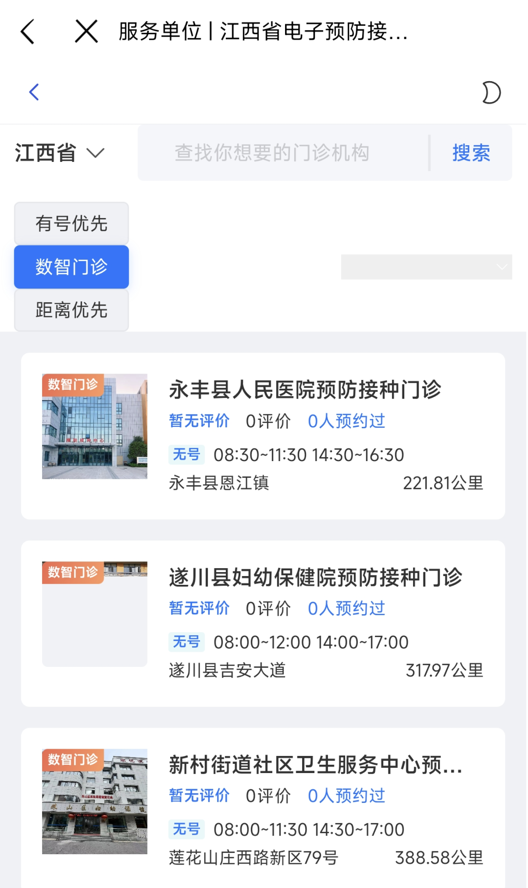 3.搜索接种单位:点击“服务单位”,可按需查询接种单位地址、服务时间和联系方式等信息。