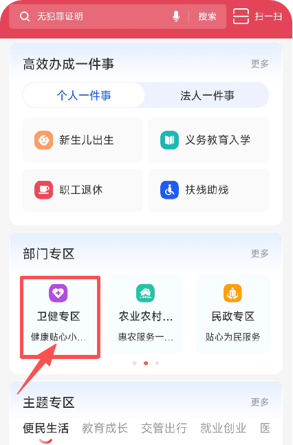 2.进入“赣服通”首页,点击“江西省电子预防接种证申领”入口或者在“卫健专区”-“热门服务”点击“电子预防接种证”,即可进入到电子预防接种证申领页面;