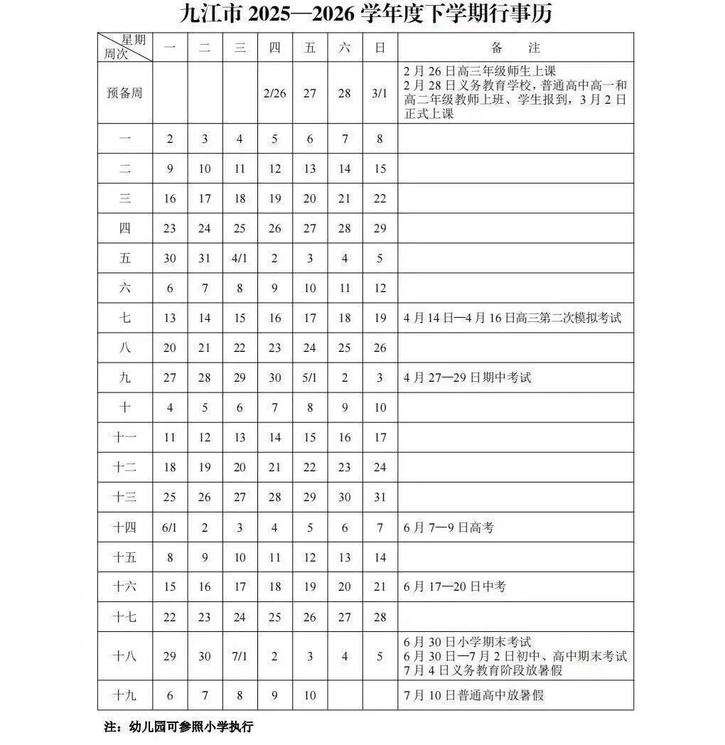 九江市2025-2026学年度下学期