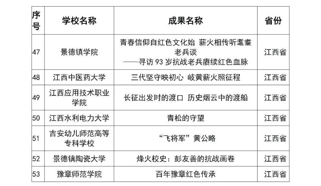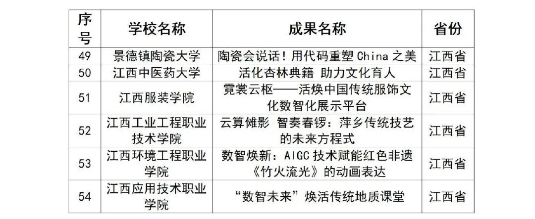 按照《教育部办公厅关于举办2025年高校“礼敬中华优秀传统文化”宣传教育活动的通知》(教思政厅函〔2025〕10号)工作安排,经自主申报、高校审核推荐及两轮专家评审,教育部共遴选出“数智未来”焕活传统文化案例优秀作品103件、“烽火记忆”高校红色故事优秀作品100件、“魅力非遗”原创优秀作品102件。其中,江西有19件作品入选。一起来看↓↓↓