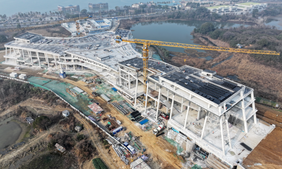 该项目位于八里湖大道南侧、规划道路西侧,占地面积约70亩,2025年10月底完成钢结构主体封顶,目前正在进行室外工程建设和外立面幕墙施工以及室内土建工程,与此同时,“三馆”均完成了初步展陈大纲编制工作。