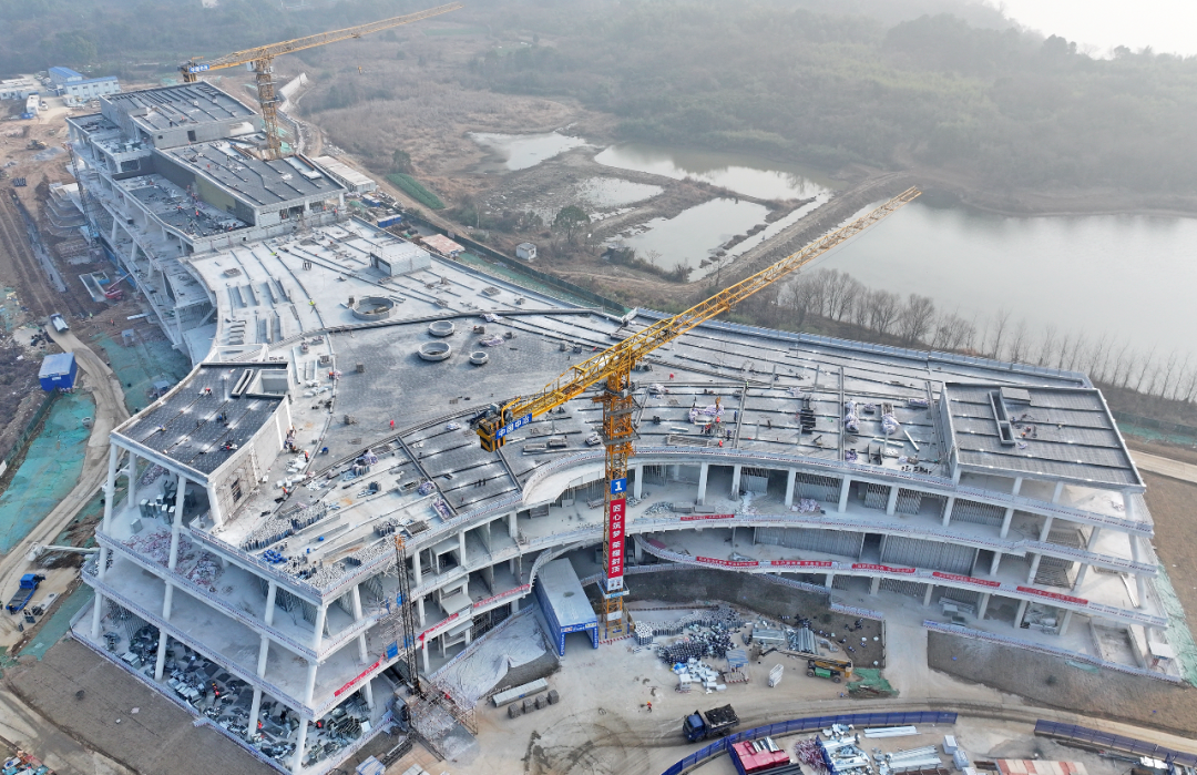 近日,从空中俯瞰九江市科技文化产业园(三馆合一)项目,一座体现创新与实用相结合的标志性建筑跃然眼前。