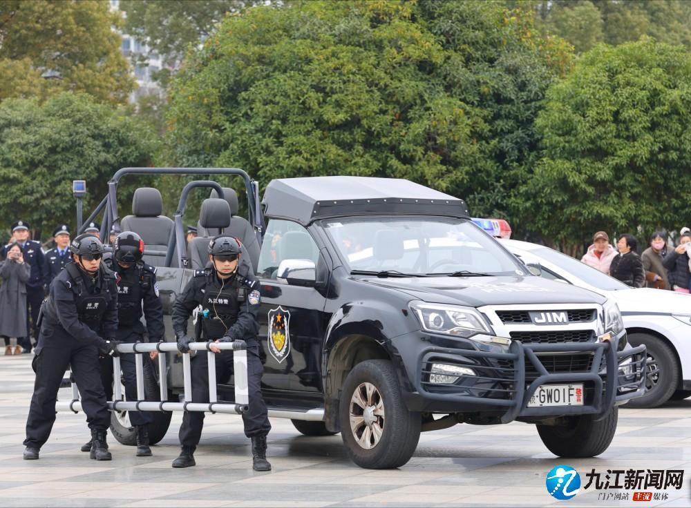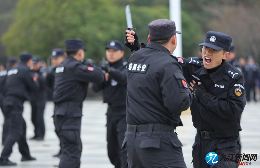 日前,瑞昌市公安局在市民广场组织开展了“平安护航 砺剑铸盾”实战演练活动,全面检验和提升多警种协同处置能力。演练中,各警种依次进行了交通手势操、匕首操、公交车反劫持、擒敌拳及防暴队形等实战课目展示。活动聚焦实战实效,通过模拟真实应急处置场景,锤炼公安队伍的快速反应与协同作战水平,切实提升应对突发事件的实战能力。(魏东升 九江日报全媒记者 张驰 摄)