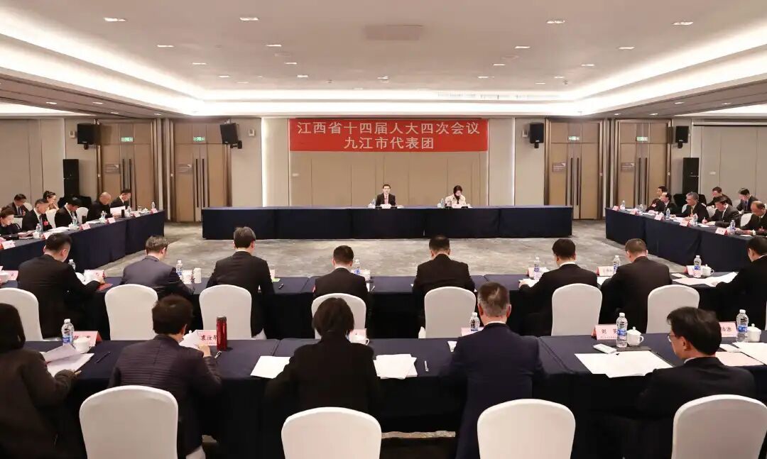 1月26日下午,江西省十四届人大四次会议九江市代表团召开第一次全体会议,市委副书记、市长蒋文定,市人大常委会主任廖奇志,市委常委、市纪委书记、市监委主任韩潮,市人大常委会副主任胡迪出席会议。
