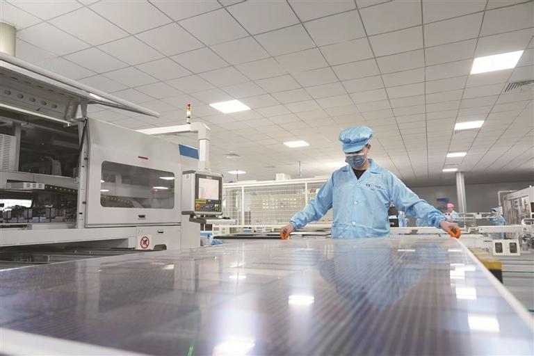 今年以来,玉山县各企业以“开局就是决战、起步就要冲刺”的姿态抓生产、赶订单,奋力冲刺一季度“开门红”。图为近日,上饶云天新能源有限公司自动化太阳能电池组件生产车间,工人正在赶制出口太阳能电池板订单。张和海 摄