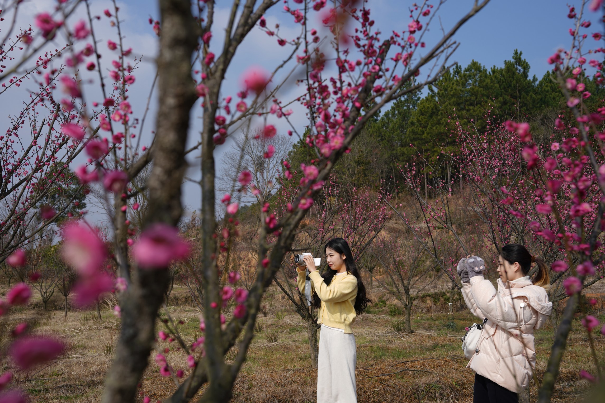 1月23日,一场寒潮过后,天气开始放晴,仙女湖区欧里镇白梅村数十亩梅花竞相绽放,疏影横斜、暗香浮动,成为冬日一道亮丽的景致,吸引不少市民和摄影爱好者前来赏梅、打卡。本报记者 凌厚祥 摄