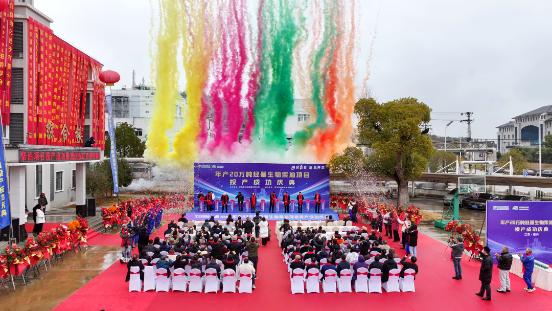 此次投产的年产20万吨烃基生物柴油项目位于德兴高新区,建设面积约102.55亩,建成20万吨/年烃基生物能源产品生产线,以棕榈酸化油、废弃动植物油等为原料,全面达产后预计年销售额可达26亿元以上。