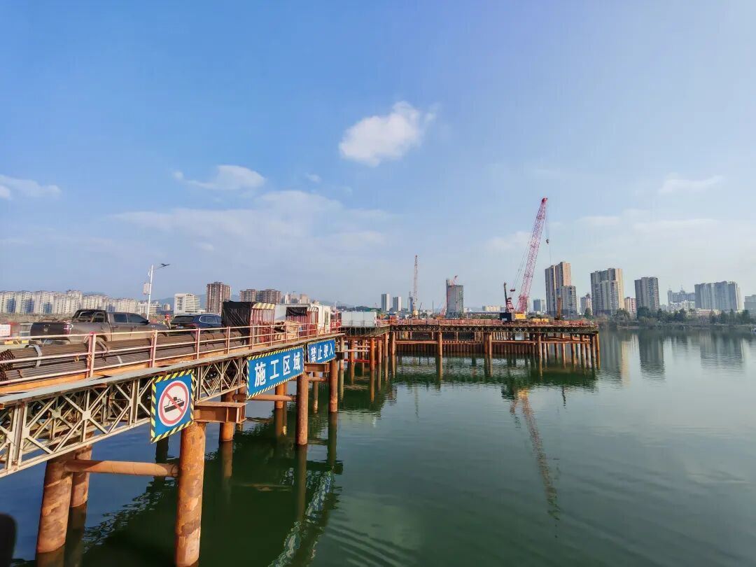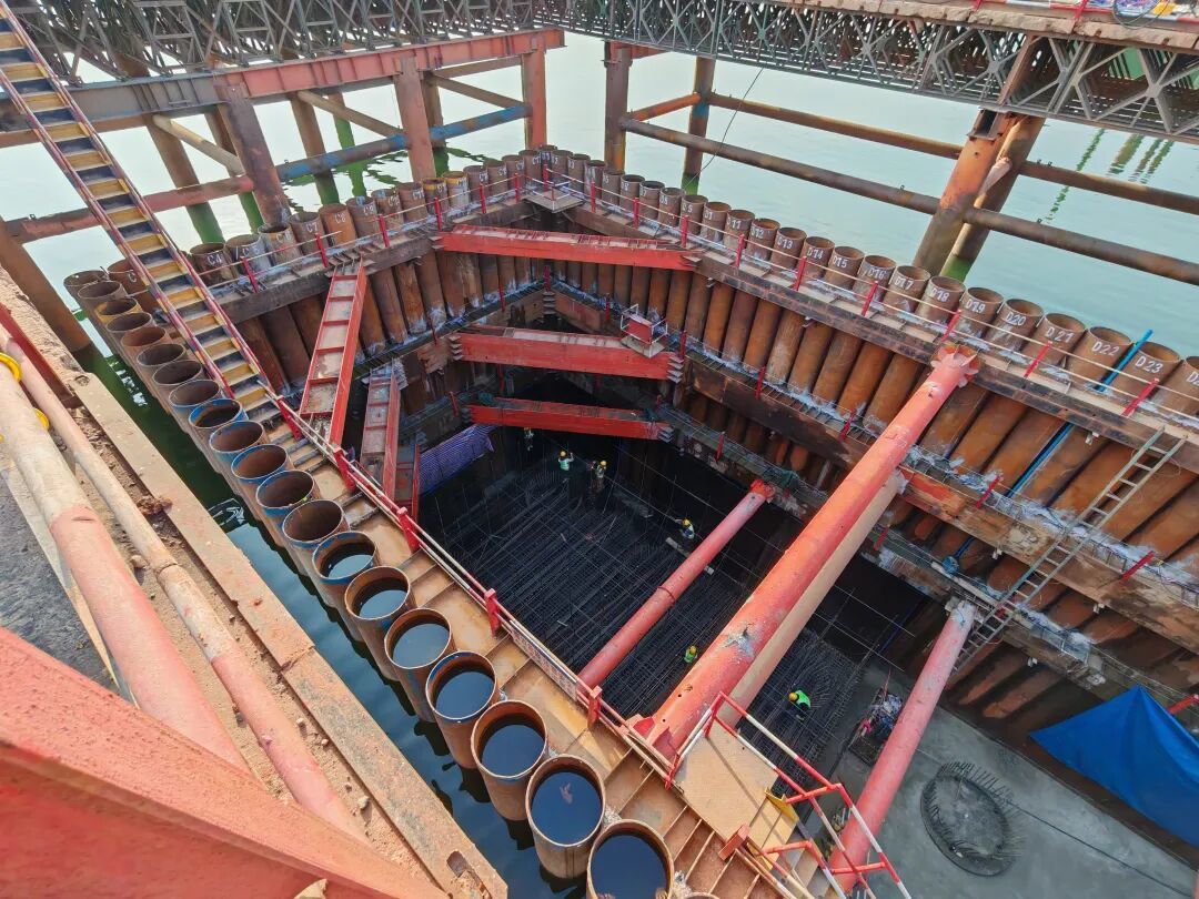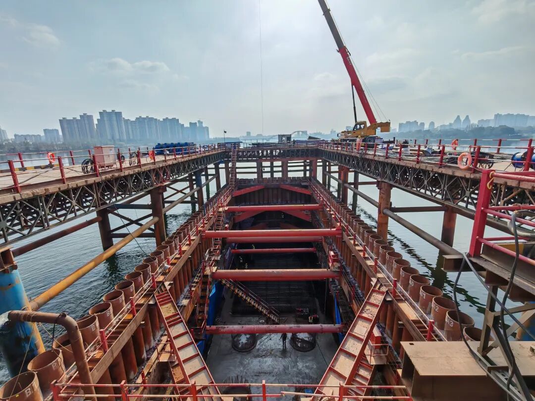大桥主墩作为该项目关键控制性工程,中交二航局项目管理团队采用围堰法将赣江水隔离,成功克服钢围堰施工中泥质粉砂岩地质、水下地形复杂等不利因素影响,在水底创造一个安全、干燥的施工环境,确保了施工人员安全,并保障了赣江江水水质。接下来,项目建设者将加快推进承台钢筋绑扎等施工,力争春节前实现承台的顺利浇筑,为后续主墩出水和上部结构施工打下夯实基础。