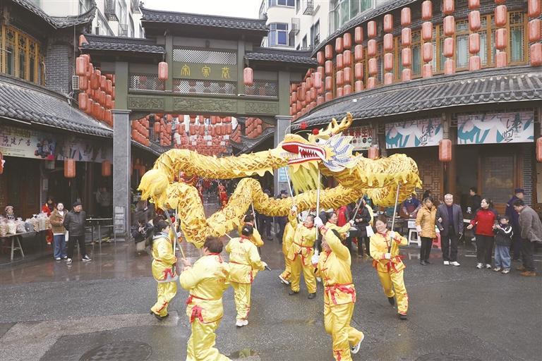 近日,德兴市银城街道肯堂山社区宋家巷街区热闹非凡,当地群众自发组成的舞龙队开展龙灯展演活动,给市民和游客提前带来新春的喜庆氛围。在欢快的锣鼓声中,金龙红龙腾跃翻飞。沉浸式年俗体验,在百年古巷中传递出中华传统节日的温暖与活力。