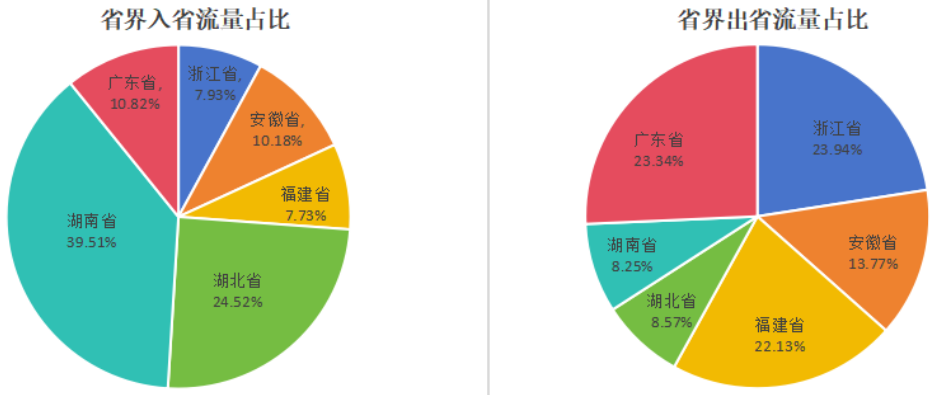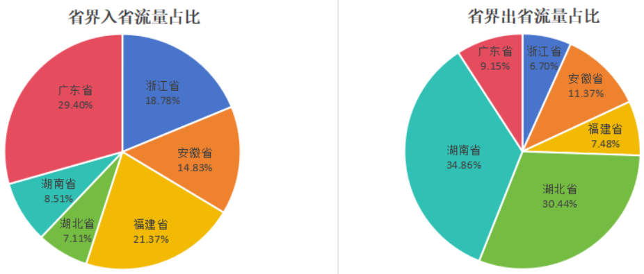 ❖ 春节后主要以由北往南、由西向东,以及从内陆向沿海扩散的返岗流为主,主要从湖南、湖北方向入省,从浙江、广东、福建方向出省。