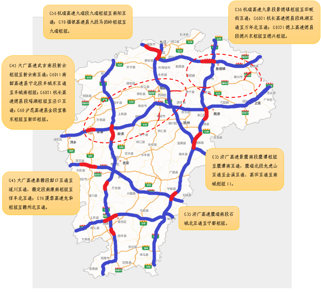 | G6021杭长高速 | 德昌段军山湖、万年北、德兴服务区 |