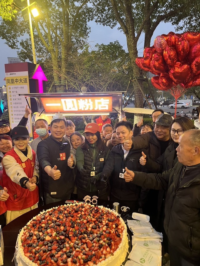 29日当天恰逢万方圆39岁生日。作为“万方圆品牌”创始人,他发起的“一圆粉店”公益非盈利项目,每日17:00-21:00固定开放,为环卫工人、保洁人员、交警、保安、教师、现役及退伍军人、消防救援人员、残疾人、医护人员、老弱病残群体、网约车司机、快递员、外卖骑手以及临时遇困者等,免费提供100份热腾腾的炒粉或炒饭,为有需要的人送上不问缘由的温饱支持。