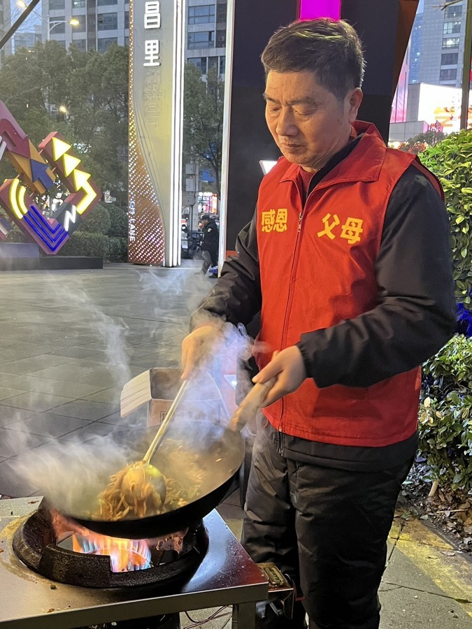 万方圆向记者介绍,该公益活动自1月7日启动,计划持续开展100天,这段时间他每天都会到摊点亲自掌勺。排队的人群里有不少熟面孔,他都会热情地打招呼。