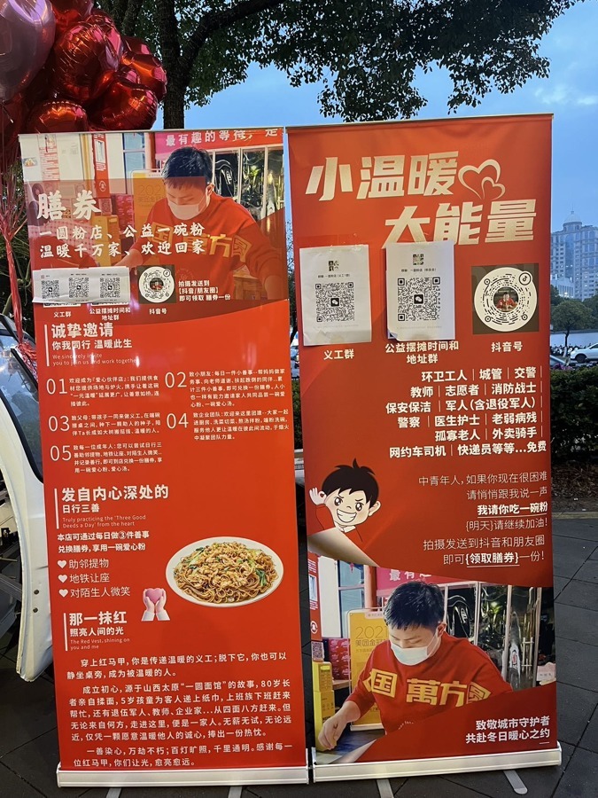 万方圆的助理告诉记者,万老板经常做公益,此前他常以捐款、捐物的方式参与公益,此次则选择走到一线,用一碗碗热乎的粉面,把温暖直接送到劳动者手中。
