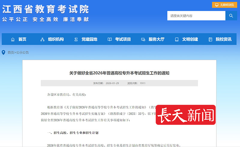 今视频客户端讯 江西省2026年普通高校专升本统一考试定于3月29日举行。已被免试录取的考生,不再具备参加统考及其他批次录取的资格。