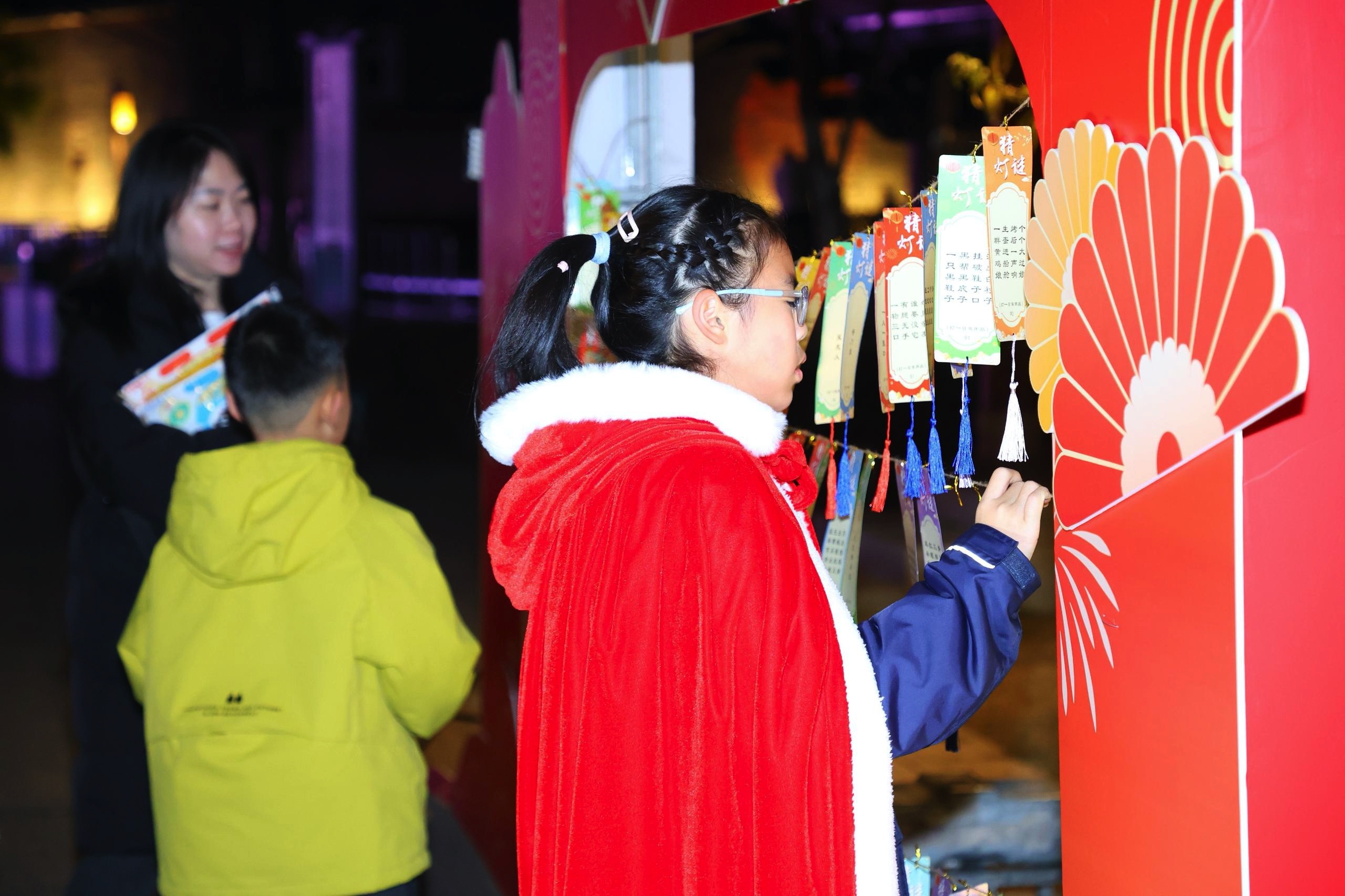 春节临近,景区将传统年俗与古镇风貌结合,设置了非遗打铁花、猜灯谜、投壶、蹴鞠及舞狮、踩高跷等多项体验内容,让游客在游览中感受客家文化特色与节日喜庆氛围。