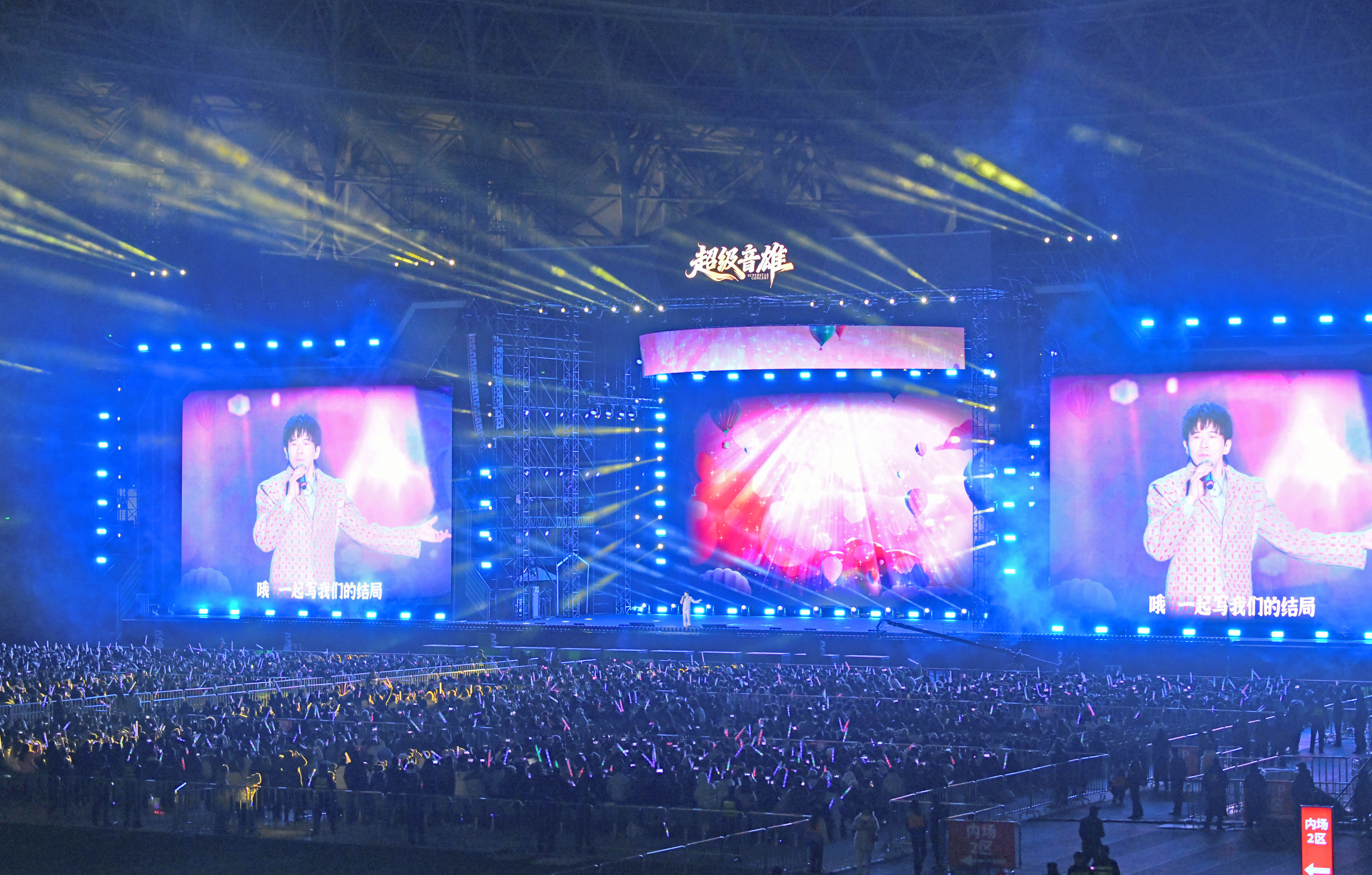赣南红客户端讯(记者刘青 欧艳芬)1月31日晚,“超级音雄巨星live演唱会·赣州站”在赣州市全民健身中心激情开唱。黄品源、光良、阿杜、张信哲四位华语乐坛实力唱将齐聚,为现场观众带来近30首经典曲目。