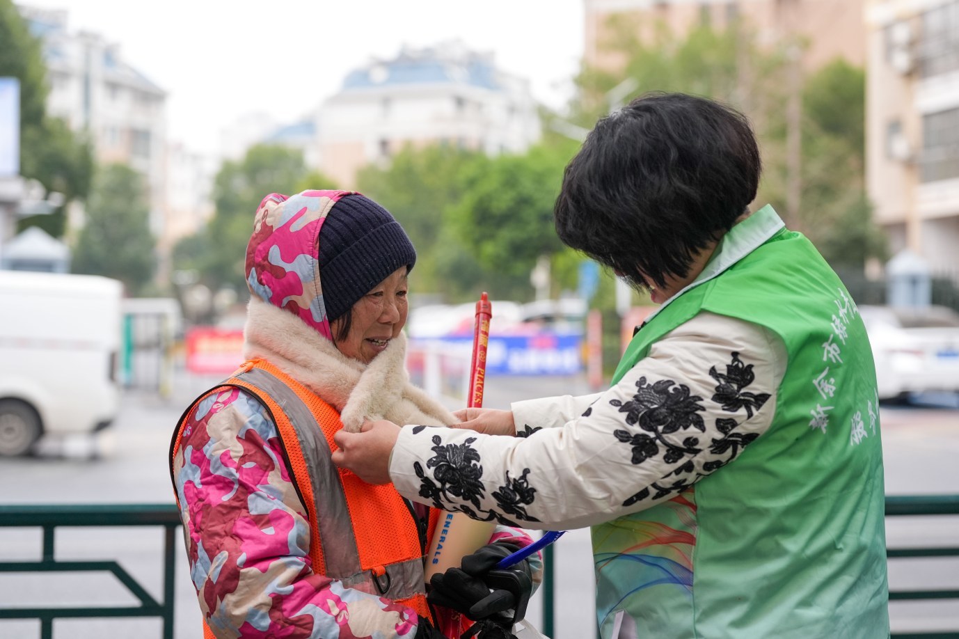 近日,我市气温持续偏低,城市各处的“暖新驿站”为新就业群体和户外工作者备好暖身贴、暖手宝、热饮等御寒物资。同时,志愿者们也主动走上街头,为快递员、环卫工人等户外劳动者送去温暖,让股股城市暖流温暖寒风中的身影。本报记者谭建荣摄