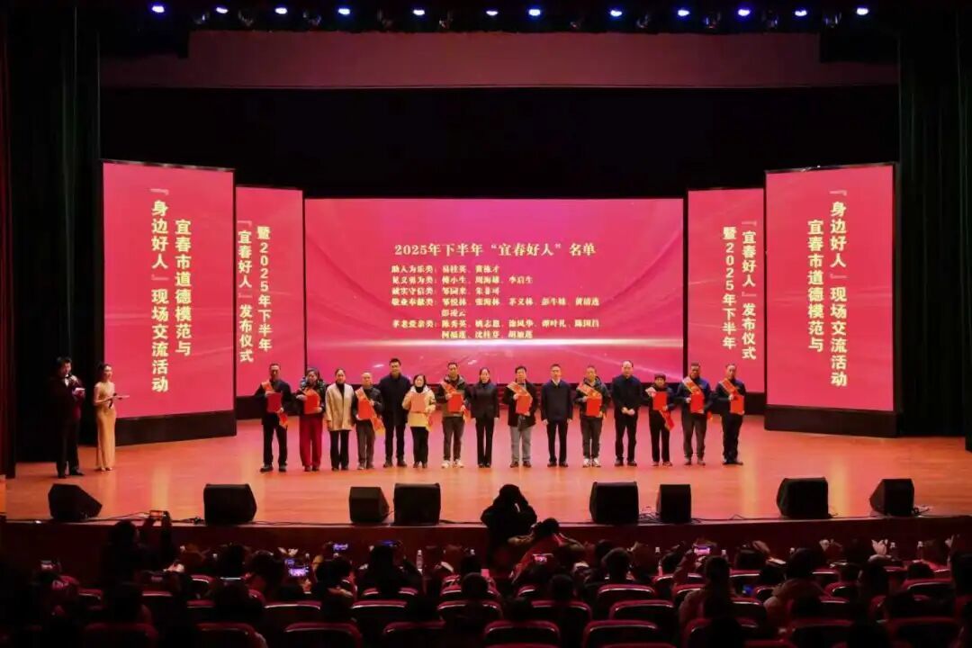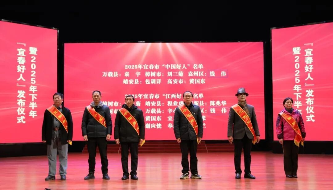 活动现场,市县两级参加活动的领导共同揭晓了2025年下半年“宜春好人”名单,并为获评代表颁发荣誉证书。2025年,宜春共有5人获评“中国好人”,1人获评“全国新时代好少年”,10人获评“江西好人”,发布“宜春好人”40组42人。其中,“中国好人”和“江西好人”年度获评人数均位居全省第一,充分彰显了宜春崇德向善的浓厚社会氛围和道德建设的显著成效。截至目前,宜春共有中国好人246人,位居全省第一,全国前三。