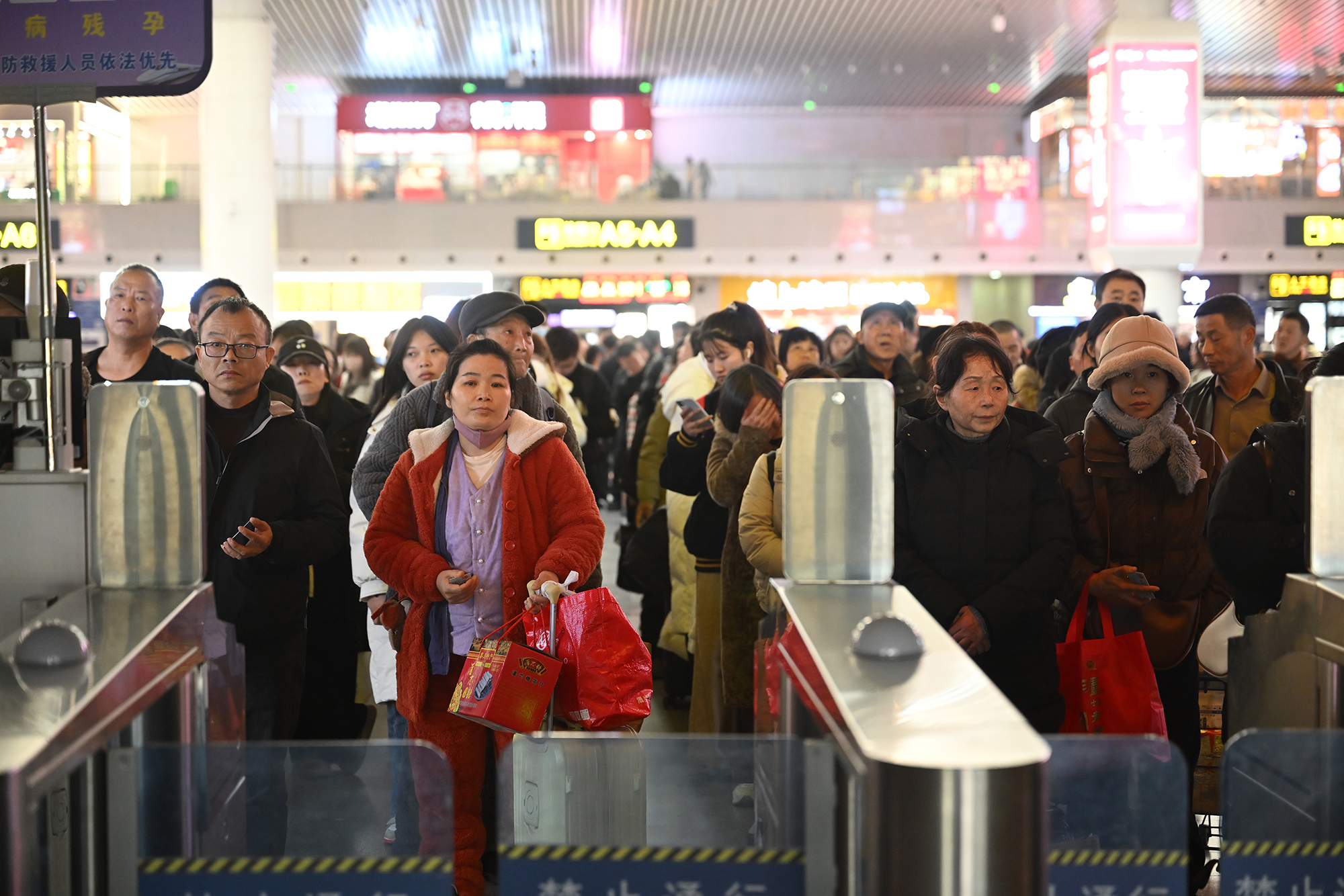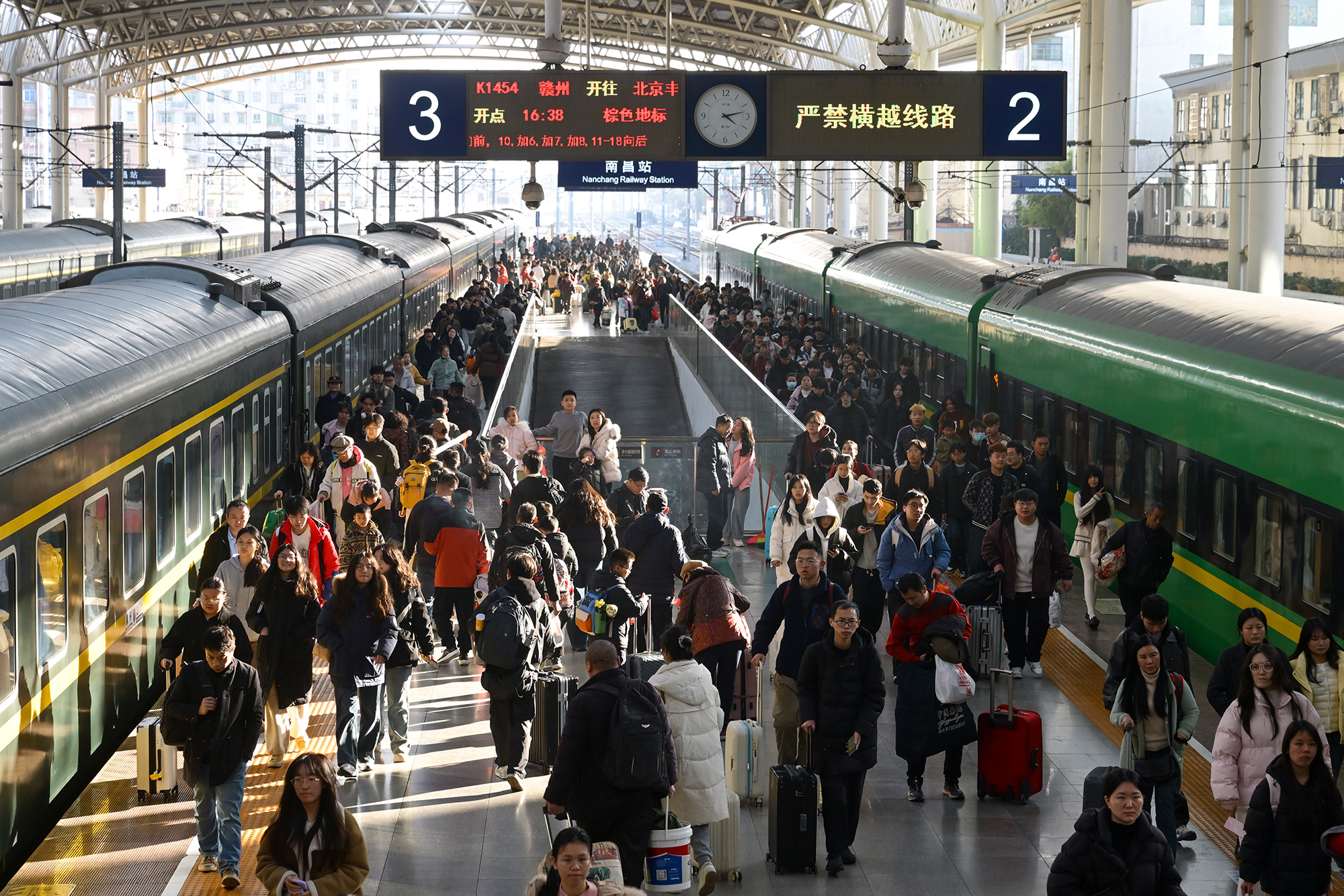 大江新闻讯 江西日报全媒体记者 洪子波 报道:2月2日,游客在南昌站有序踏上回家旅途。春运期间,南昌三座车站预计发送旅客595.5万人次,为充分满足旅客出行需求,南昌车站精准提报运输计划,科学制定加开列车,提升高峰时段运能保障能力,保障旅客安全出行。