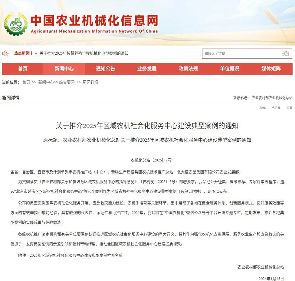 全国2025年区域农机社会化服务中心建设典型案例公布