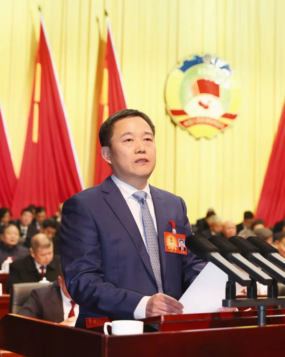 陈云、李建涛、俞健、刘斌、毛敏珍、张庆国、叶震春、诸立、夏丽云、付波文、廖健、吴云飞、洪海在主席台前排就座。