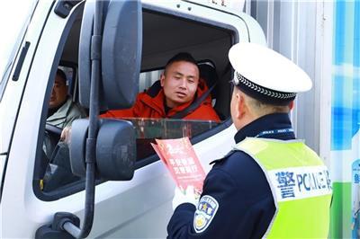 ▲ 浮梁大队民辅警向过往司乘人员发放“平安春运 交警同行”主题宣传折页。