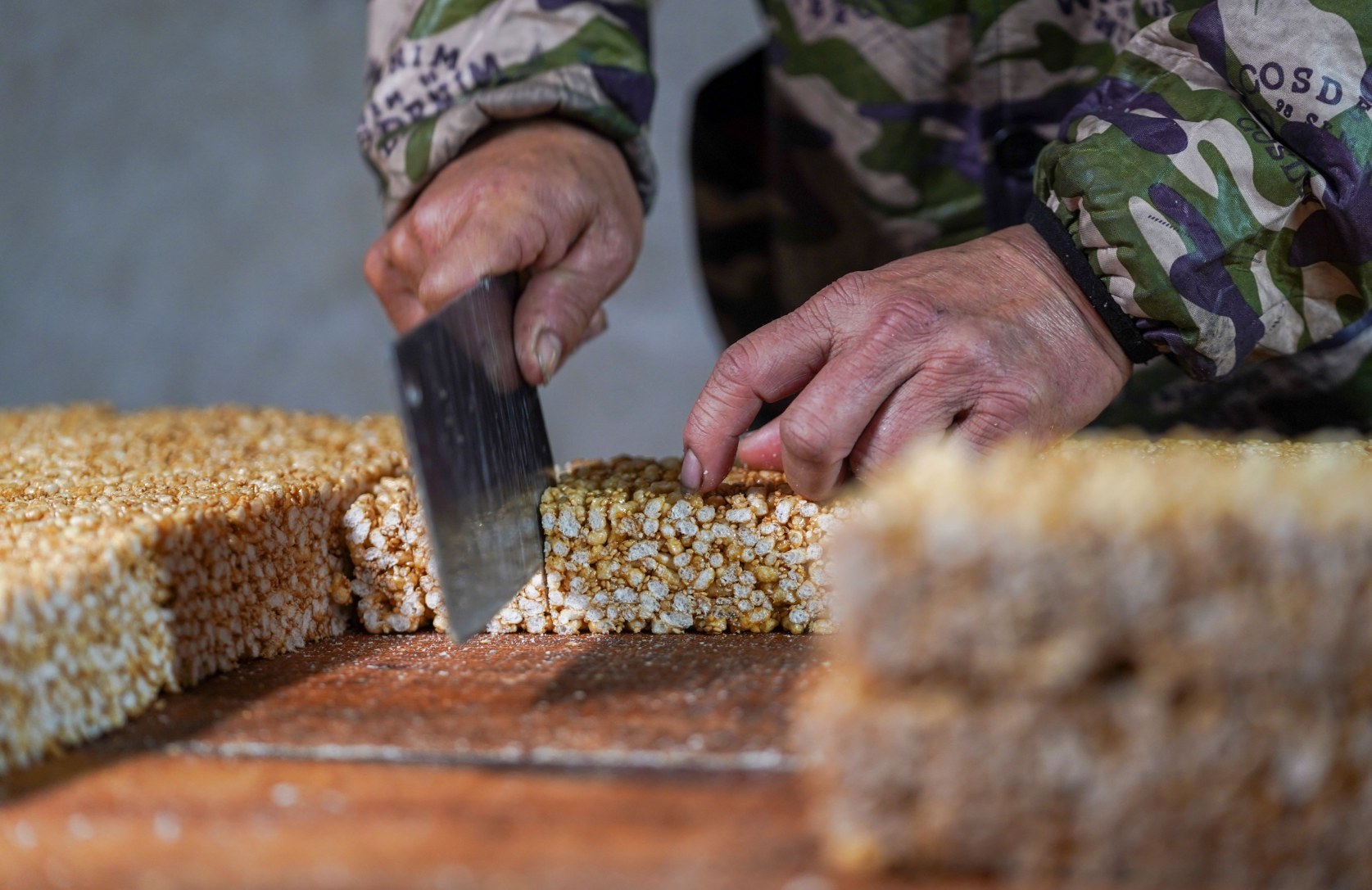 1月20日,仙女湖区观巢镇共青村农户正在制作冻米糖。春节将至,我市各地制作冻米糖、麦芽糖、腊肉、香肠等春节美食的农户忙碌起来,他们通过自制、代制作的方式传递传统美食制作工艺,迎接春节到来。本报记者赵春亮摄