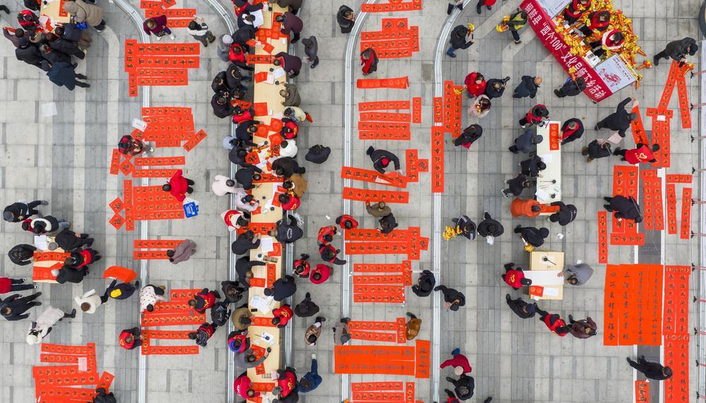 当日,铜鼓县组织30余名书法爱好者和志愿者在秋收起义广场免费为市民现场书写春联和“福”字,为即将到来的新春佳节营造浓厚的节日氛围。(本报记者 周 亮 摄)