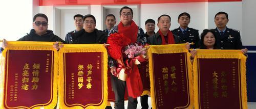 徐俊敏一家给警方送锦旗并合影。