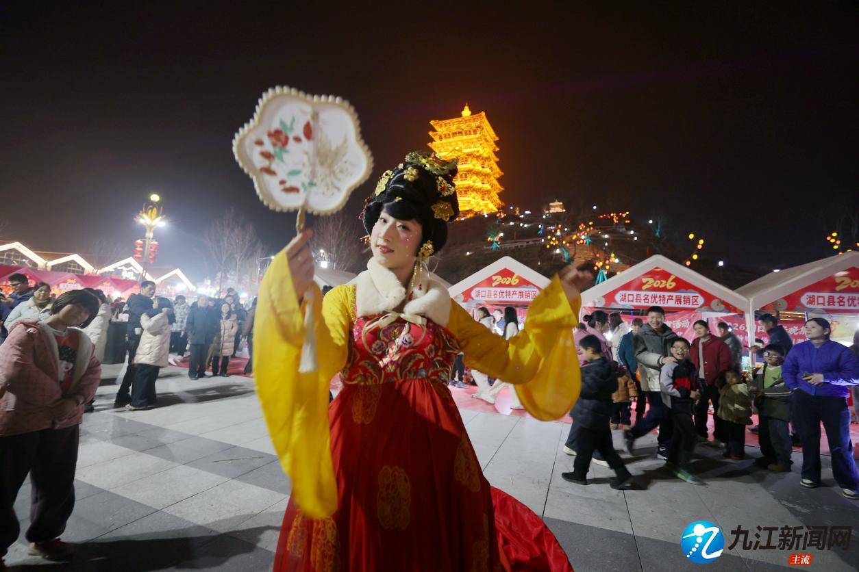 2月4日晚,湖口县春节联欢晚会在石钟山景区游客中心广场上演,炫彩夺目的舞台灯光、自编自排的文艺节目,赢得台下观众阵阵掌声。晚会在开场歌舞《咱们村里有春晚》中拉开序幕,情景表演唱、相声、小品、戏曲、音乐快板等文艺节目轮番上演、好戏连台,现场同步设置新春文旅特色集市,烟火气息与艺术氛围交融碰撞,勾勒出“赏春晚、赶大集、迎新春”的团圆画卷。(郑飞华 九江日报全媒记者 孙昌模 摄)