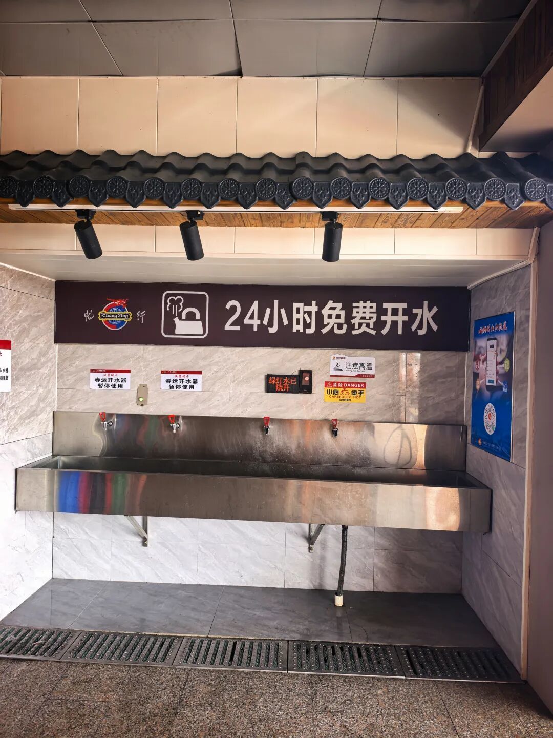 他解释,4个水龙头,平时使用的是2个,另外2个关闭,春运或者节假日会全部开启,客流量大的话,会再增加两个备用的。温馨提示的意思是,那是春运期间开启的,平时暂停使用,在表述上容易产生歧义,会马上调整。