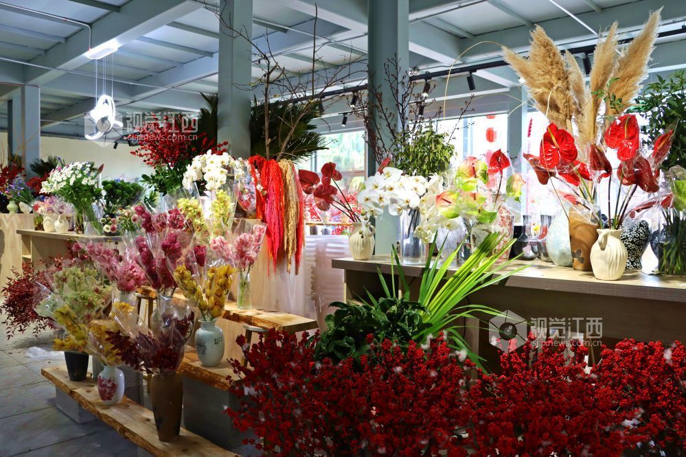 2月7日,江西省南昌市九洲公园迎春花市热闹非凡,富贵籽、蝴蝶兰、长寿花等各式各样的年宵花、盆栽姹紫嫣红,洋溢着喜庆的年味,前来选购花卉的市民络绎不绝。 视觉江西 袁骏 摄