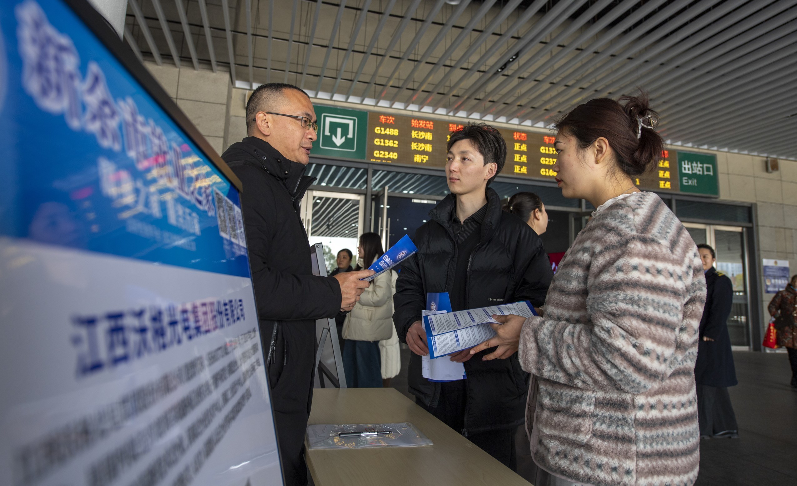 2月2日是春运首日,市人社局在新余北站出站口举办春风行动暨就业援助季专场招聘会。活动精准对接返乡人员就业需求和本地企业招工需求,组织本地重点企业提供2200余个优质岗位,让返乡农民工、高校毕业生等群体便捷获取招聘信息,助力返乡人员就近就地就业。本报记者赵春亮摄