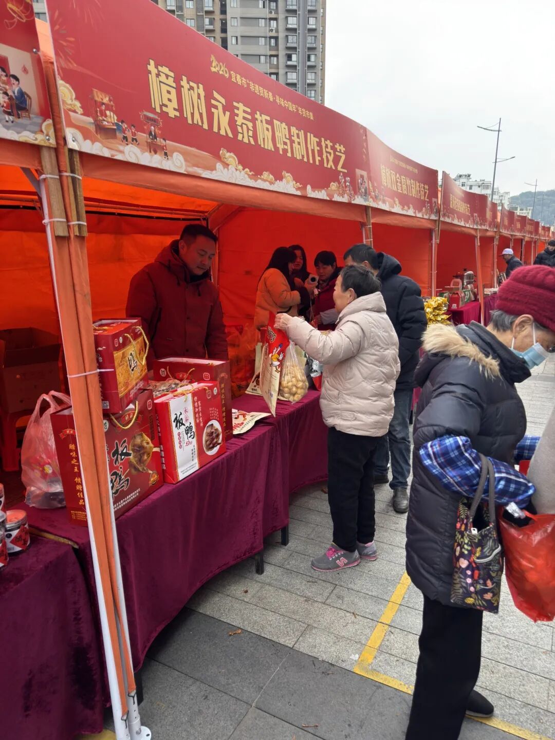 非遗年货展销区是人气最旺的“寻味”中心,铜鼓包圆、丰城冻米糖、温汤发糕等40多项本土传统美食与工艺品齐聚,市民穿梭其中品尝选购,一站式采购充满非遗特色的年货,让传统年味在舌尖延续。