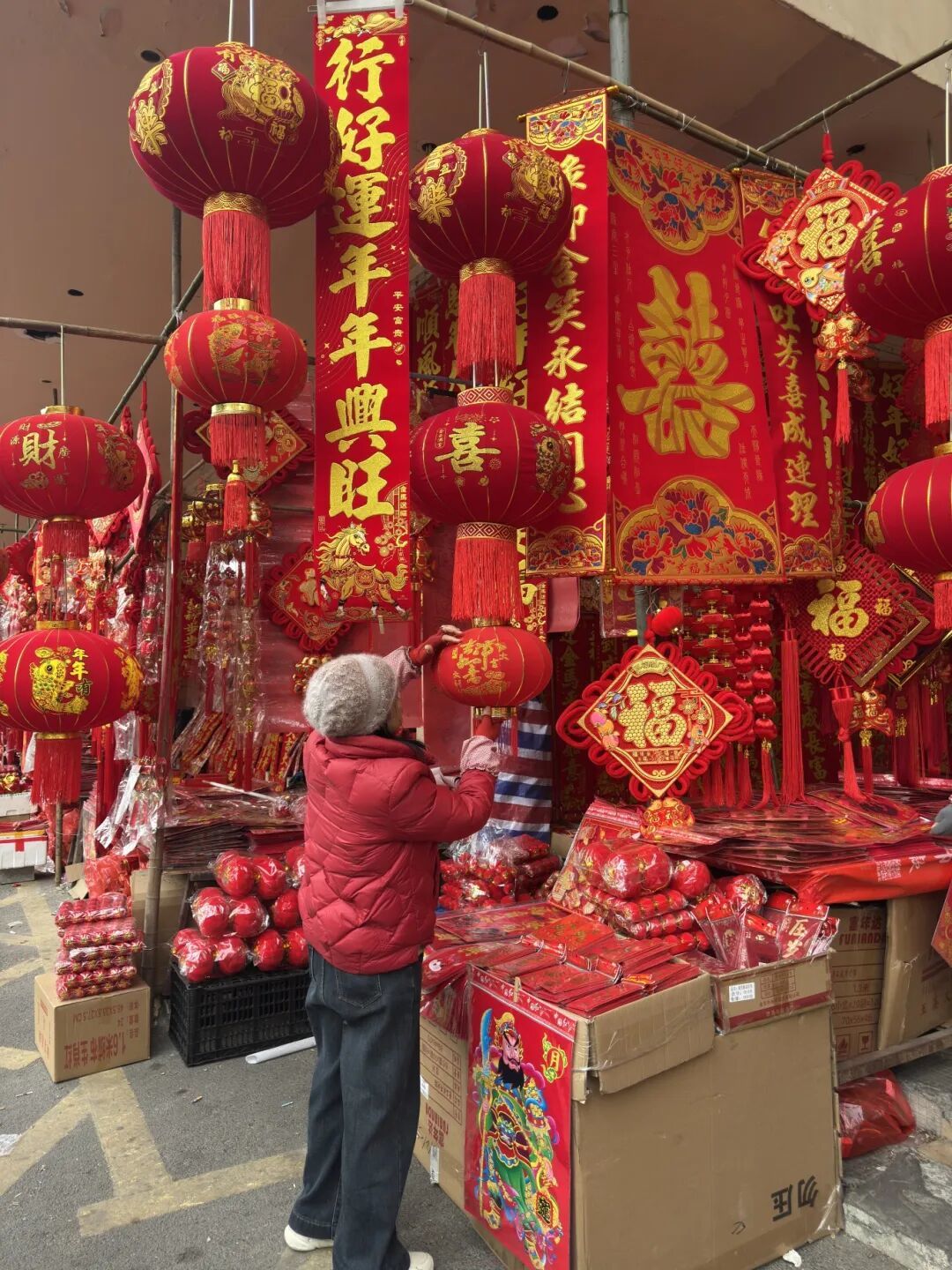 街头的灯笼亮堂喜庆,市场里的年货也琳琅满目。被春联、灯笼装饰的店铺里,市民们正兴致勃勃地挑选着心仪的年货。商户易老板笑着说:“临近年关,前来购买的市民越来越多,大家都想置办些装饰品,热热闹闹过新年。”