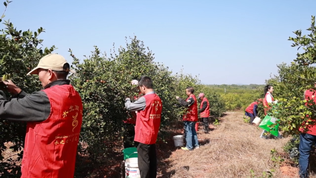 为了让油茶产业真正成为长效富民产业,水北商会下足了功夫,设立产业发展部,深耕“产业带富”新模式,选择具有基础性且带动性强的油茶产业作为突破口,打造从种植、加工到销售的全产业链。“光有种还不够,还要让茶油能卖上好价钱、不愁销路。”水北商会常务副会长陈木生介绍说,商会还创立江西水之北惠农科技发展有限公司,采取“商会+农户、商会+大户”的合作模式,建设高产油茶示范基地,打造“颖商”“拾年山”品牌,动员线下300多名会员和线上商会数字平台进行销售推广。同时建立油茶服务中心,投入50多万元改造油茶树品种、完善田间管理,配套建设蓄水池、灌溉管网等设施,聘请专业技术人员全程指导,让老茶林焕发新生机。