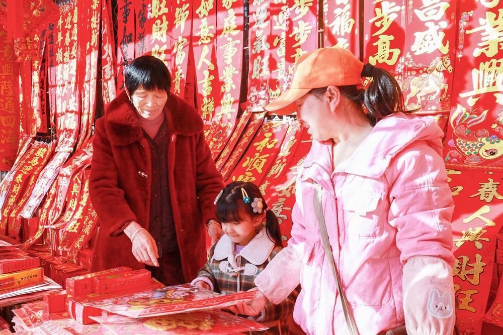 2月2日,宜春中心城区商城,市民正在选购年货。春节临近,年味渐浓,我市年货市场逐渐热闹起来。市民走进城区各大市场置办春联、灯笼等特色年货,迎接新春佳节的到来。(实习生 龚安然 本报记者 李亦杰 摄)