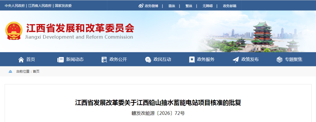 近日,我委正式批复同意建设江西铅山抽水蓄能电站项目,标志着该项目前期工作取得关键进展。